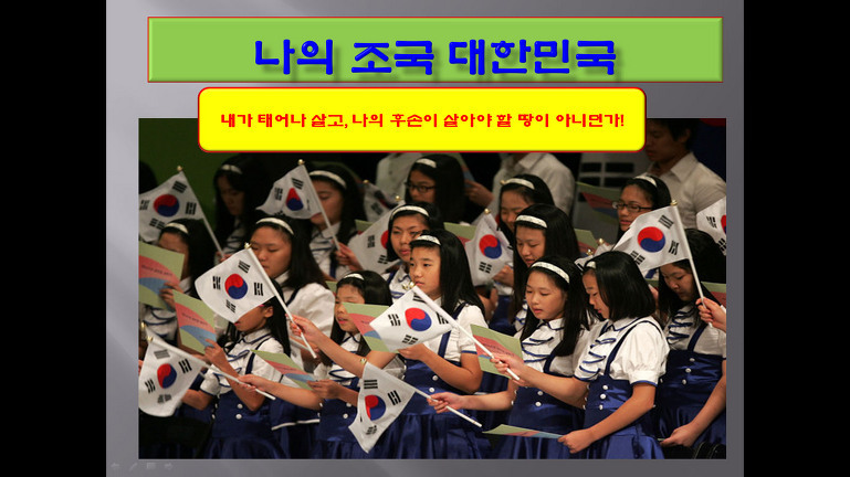 (이 위대한 천손의 나라는 이 아름다웁고 용감하고 현명한 다음의 세대에게 전해저야 한다!)